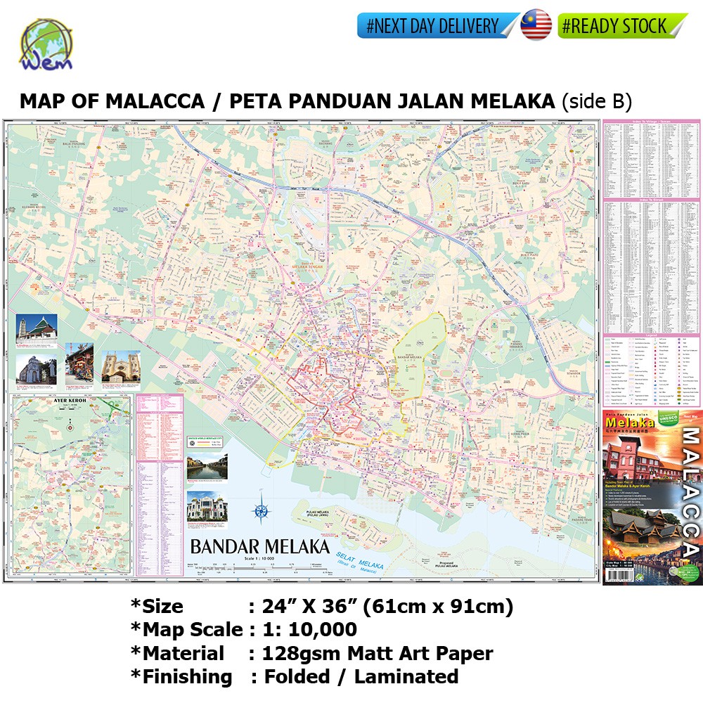 Road Map Of Malacca Peta Panduan Jalan Melaka 马六甲州及市区街道详图 Shopee Malaysia